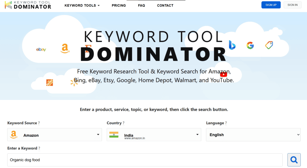 Keyword Tool Dominator is a free tool that helps you find popular keywords from Amazon’s search suggestions.