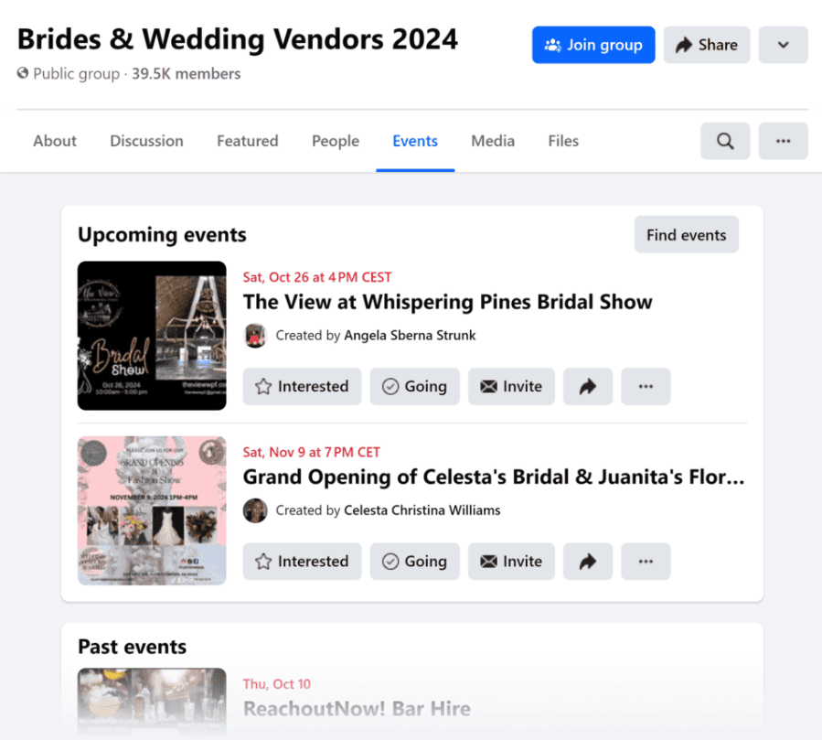 Join a few Facebook groups related to your industry. Then, check the “Events” tab in each group.
